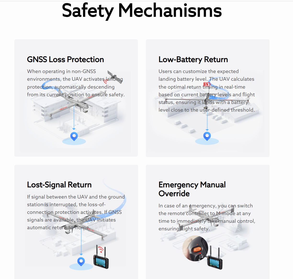 * Refers to the maximum wind speed the UAV can withstand in fixed-wing mode.