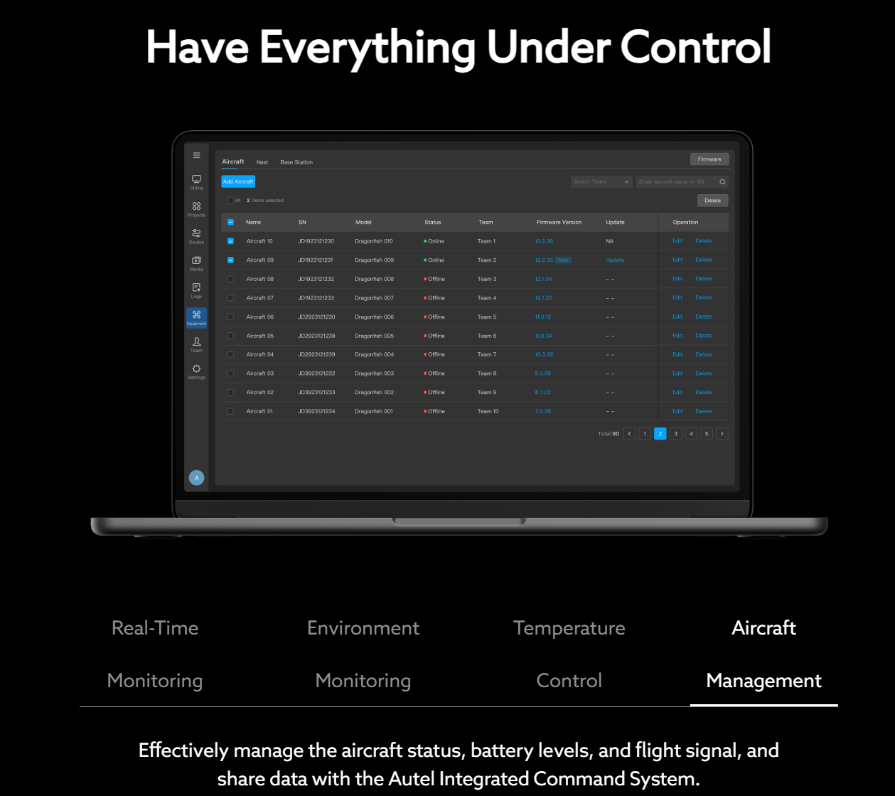 Multiple Nests can be networked to extend the operating range and allow flexible, take-off and landing remotely.