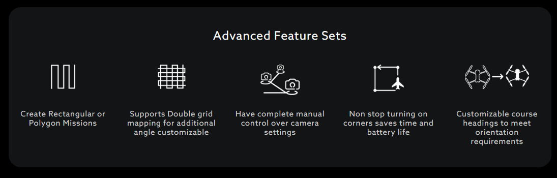 * Regarding flight time, the data is obtained under conditions with no wind or other flight interferences, with the aircraft's obstacle avoidance behavior set to braking mode, and the camera performing photo capture only. The aircraft flies continuously at 8 m/s at sea level until the battery reaches 0% capacity. This data is for reference only. To ensure flight safety, users should closely monitor the App's notifications during actual flight operations.