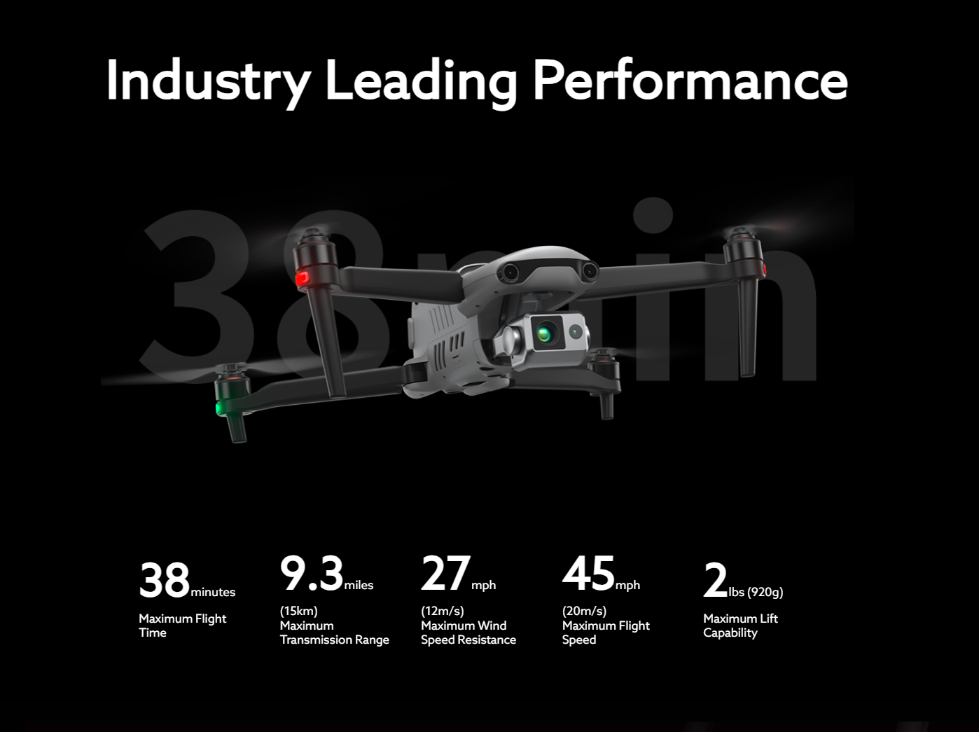 * Regarding flight time, the data is obtained under conditions with no wind or other flight interferences, with the aircraft's obstacle avoidance behavior set to braking mode, and the camera performing photo capture only. The aircraft flies continuously at 8 m/s at sea level until the battery reaches 0% capacity. This data is for reference only. To ensure flight safety, users should closely monitor the App's notifications during actual flight operations.