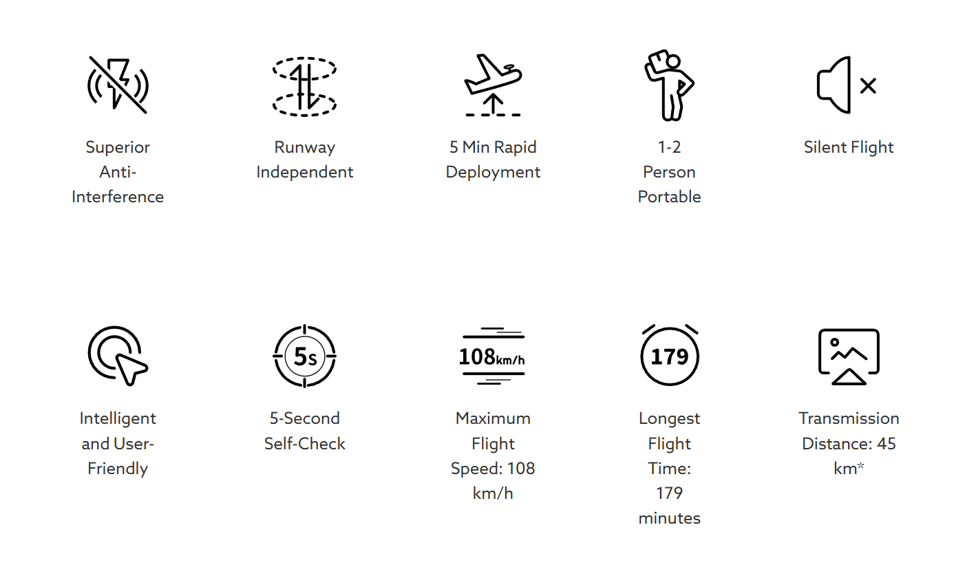 * Refers to the maximum wind speed the UAV can withstand in fixed-wing mode.