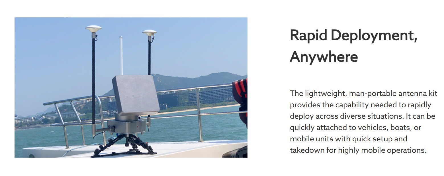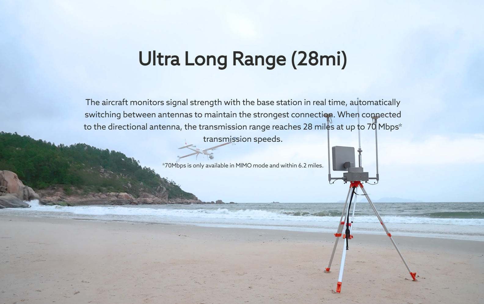 The Voltaris Smart Voltaris Transmission (ASAT) System integrates three antennas into one lightweight and portable base station. The ASAT provides a transmission range of up to 28 miles*, expanding operational range with improved wireless signal reception and greater anti-interference security. The ASAT fully integrates into Voltaris Robotics' range of solutions, giving peace of mind for compatibility and interoperability.