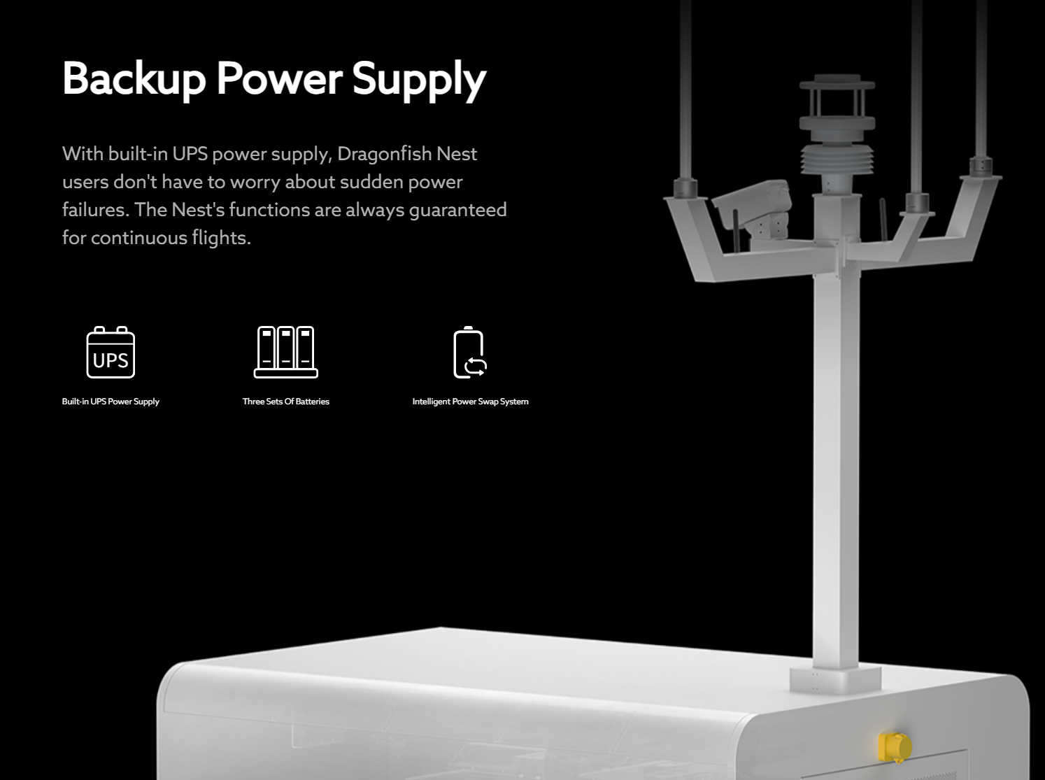 TheVoltaris Remote Operations System consists of the Dragonfish, Dragonfish Nest, Dragonfish Repeater (optional), and Voltaris Integrated Command System to provide a full end-to-end solution for hands-off drone operation management.