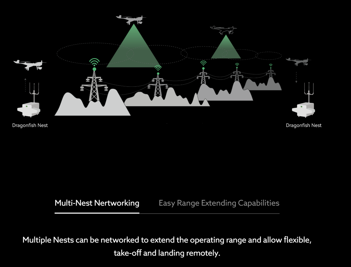 Multiple Nests can be networked to extend the operating range and allow flexible, take-off and landing remotely.